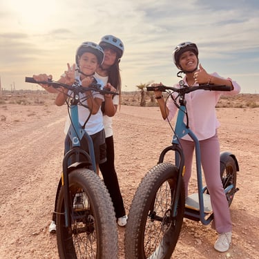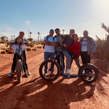 Cécile, amoureuse de la ville et de ses paysages, a créé cette aventure unique pour permettre à tous, jeunes et moins jeunes, de vivre une expérience immersive et respectueuse de l'environnement. Grâce à des trottinettes spécialement adaptées aux différents terrains, vous serez guidés à travers des sentiers cachés de la Palmeraie, ses oasis, ses villas luxueuses, mais aussi au cœur de la Médina, pour découvrir l'âme vibrante de Marrakech.