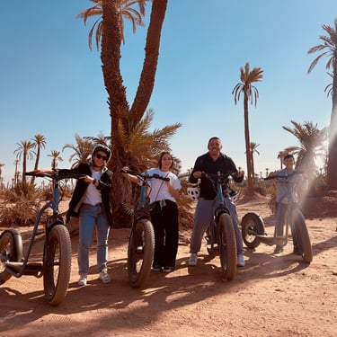 Chez Palmeride, fondée et dirigée par Cécile, nous vous offrons une manière originale et passionnante de découvrir Marrakech. Notre concept repose sur des excursions en trottinette électrique tout terrain, vous permettant de parcourir les deux lieux emblématiques de la ville : la Palmeraie et la Médina.