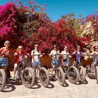 Cécile, amoureuse de la ville et de ses paysages, a créé cette aventure unique pour permettre à tous, jeunes et moins jeunes, de vivre une expérience immersive et respectueuse de l'environnement. Grâce à des trottinettes spécialement adaptées aux différents terrains, vous serez guidés à travers des sentiers cachés de la Palmeraie, ses oasis, ses villas luxueuses, mais aussi au cœur de la Médina, pour découvrir l'âme vibrante de Marrakech.